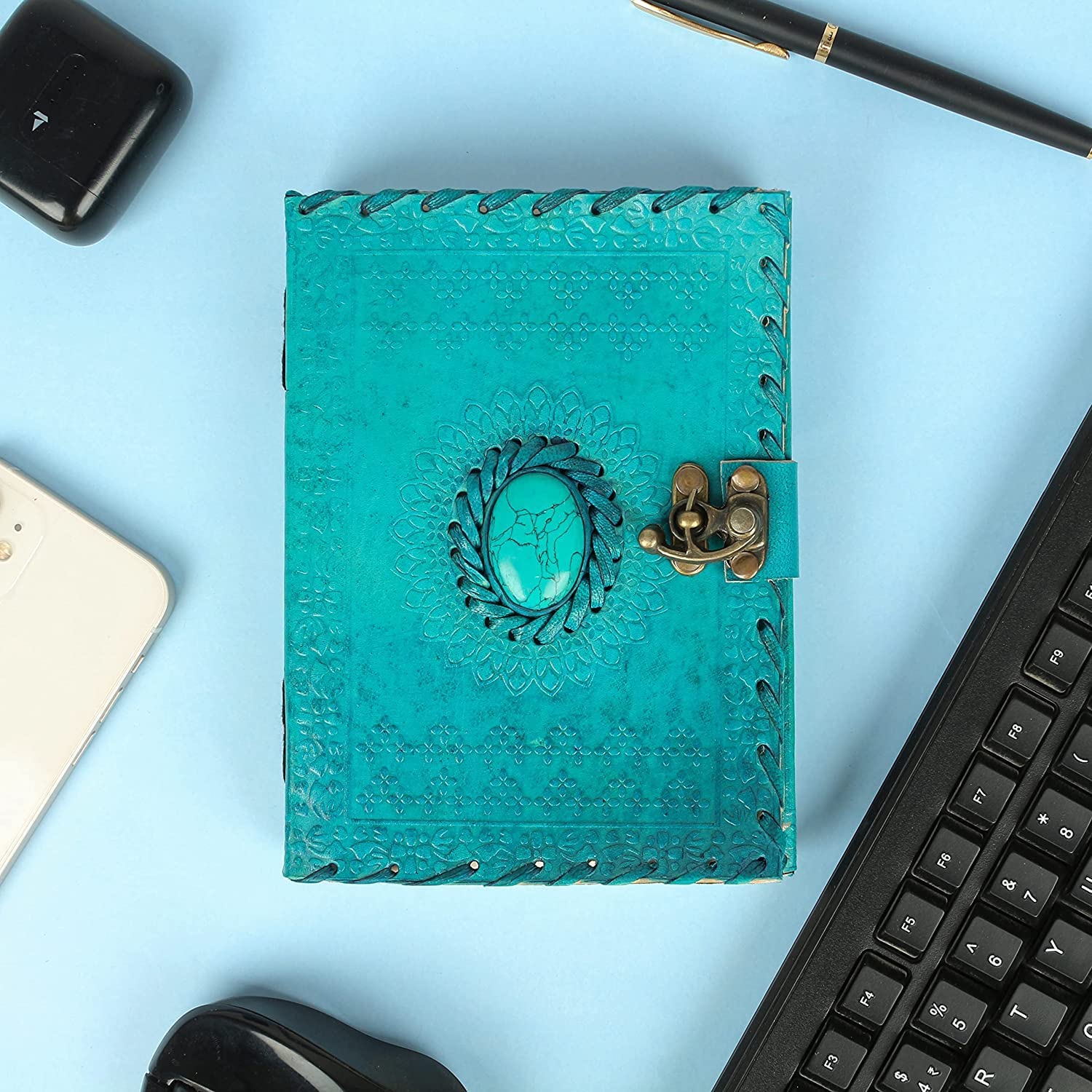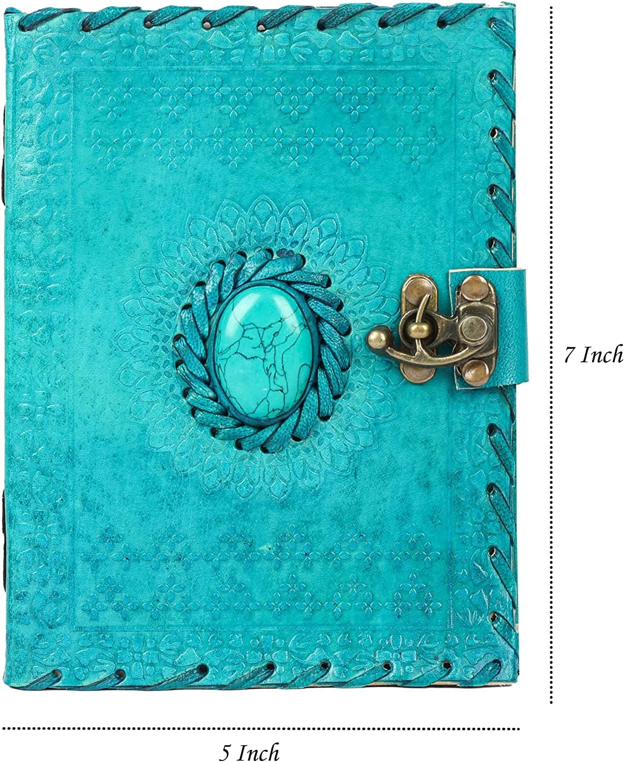 - Leather Journals – Blank Spell Book of Shadows – Journal with Lock Clasp Prop / Vintage Notebook Journal – Leather Bound Journal – Witchcraft Wiccan Notebook – Leather Sketchbook / Drawing & Writing Book / Diary – Leather Travelling Notebook for Men / Women – Unlined Antique Paper – Turquoise / 7 X 5 Inch